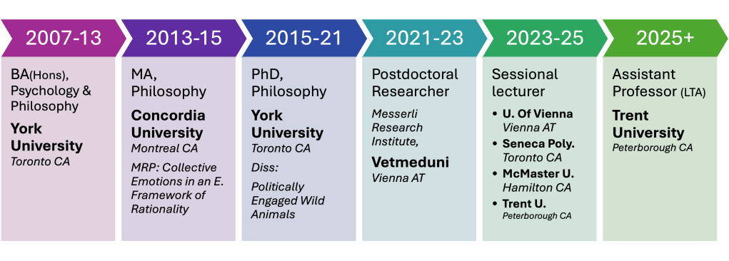 I received my Philosophy Ph.D. from York University, Toronto, in October 2021 after defending my dissertation Politically Engaged Wild Animals.